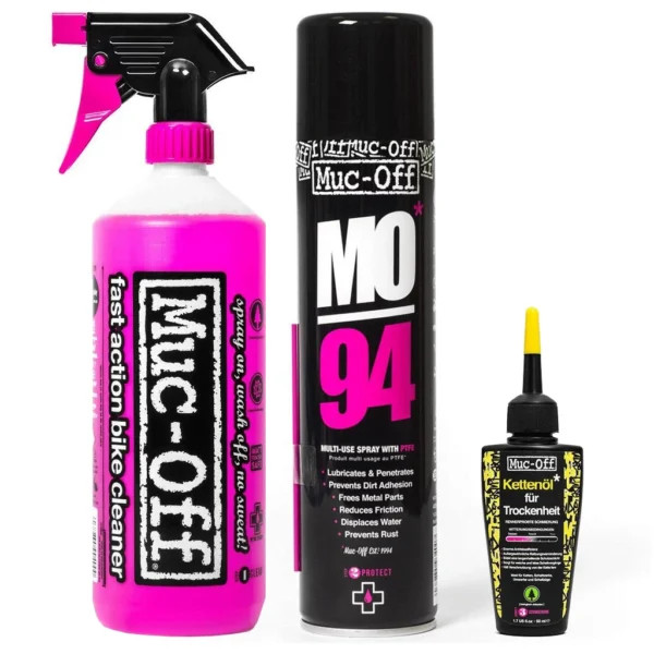 Nedves-esős időjárási tényezők mellett, vagy hétköznapi ingázó használathoz válaszd a „Muc-Off Wash Protect and Wet lube Kit”-et .